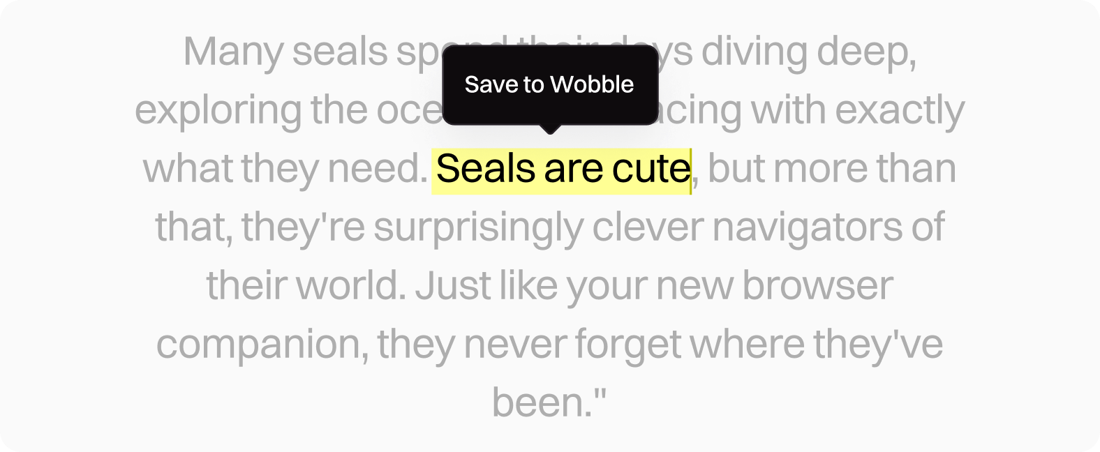 Ask Wobble to summarize, explain, or extract key points from whatever you're reading. No copy-pasting, no tab switching.